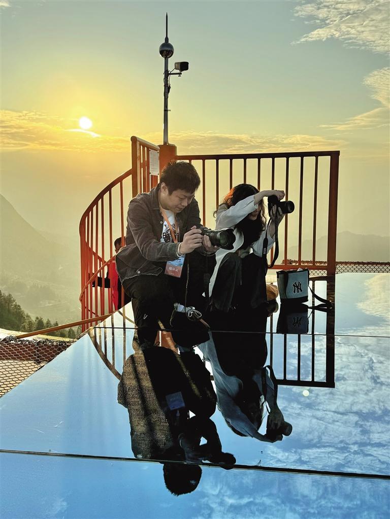 2024年11月7日,记者胡承鼎与伍珊珊在永顺县采访第三届湘西州旅游发展大会。