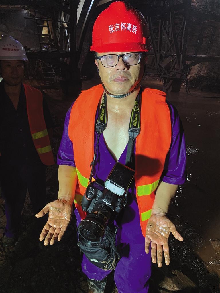 2019年,记者张谨采访建设中的张吉怀高铁最长隧道吉首隧道。