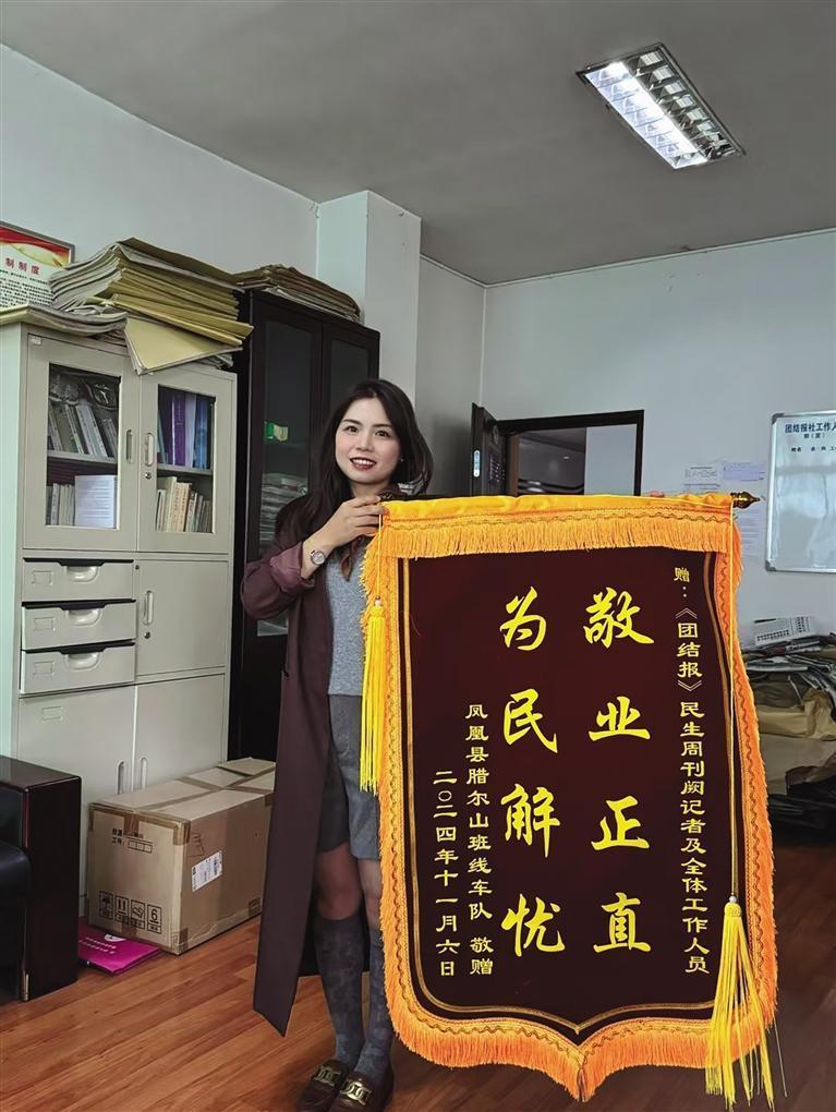 2024年11月6日,编辑中心收到凤凰县腊尔山班线车队的锦旗,感谢《团结报》民生周刊为民发声。