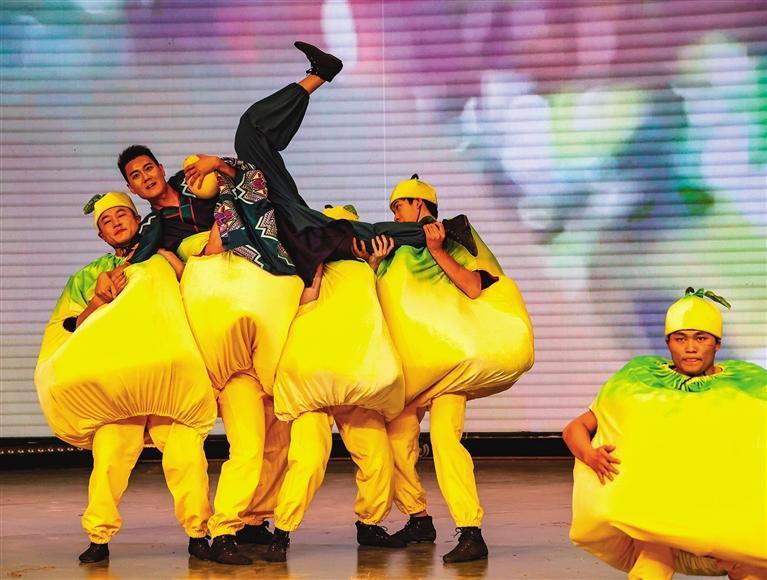 《喜乐·丰收》用欢快的舞蹈动作,将湘西特色农特产品带上舞台。 团结报见习记者 胡承鼎 摄
