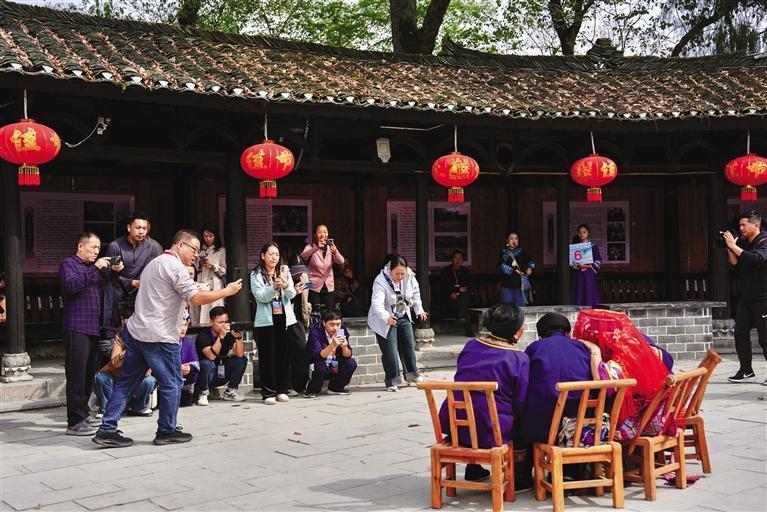 此行之中,非遗展示区王维忠的抛接火把、刀叉的“绝技”收获了不少掌声。他说:“这几年旅游业红火,越来越多景区和公司有非遗表演的需求,我才重拾回几十年前的手艺。”如今,王维忠是景区常驻表演嘉宾。“借着旅游发展的东风,传统技艺被重视了,技艺也能成‘饭碗’。”他笑着说。