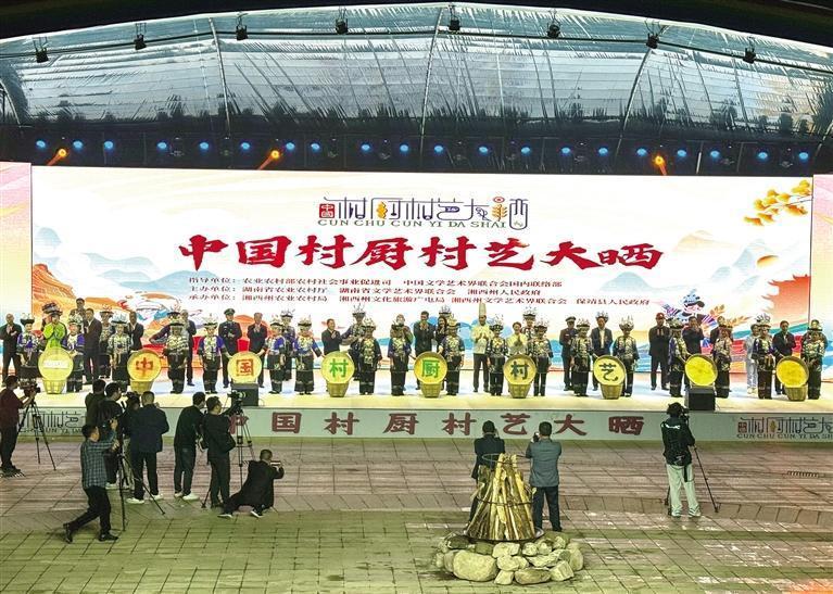湘西网11月18日讯(全媒体记者 吴宜芝 特约全媒体记者 刘番 实习生 麻红龙)11月15日晚,中国村厨村艺大晒在保靖县开晒。特色厨艺、乡土才艺、农特产品、民族文化在这里汇聚,共同打造一个共建共享的“村厨村艺”IP。湖南省农业农村厅副厅长刘益平,州委常委、州委秘书长向邦伟,副州长周燕飞出席启动仪式。