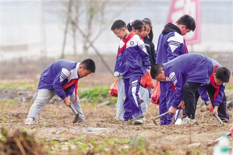 在农耕体验园区,孩子们拿着小锄头在一片红薯地里劳作,挖到红薯犹如挖到了“宝藏”,尽情享受着丰收的喜悦。