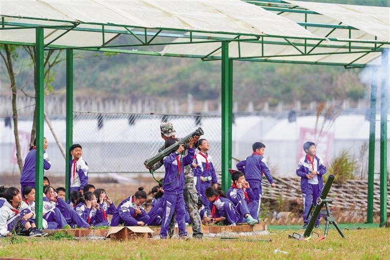 冬日暖阳下,随着一声声冲锋号的响起,一场场“激战腊子口”“飞夺泸定桥”等战斗先后在勤丰·淘野研学文旅基地内打响。11月12日,吉首市第一小学的500余名学生在老师的带领下,来到这里开展研学活动。
