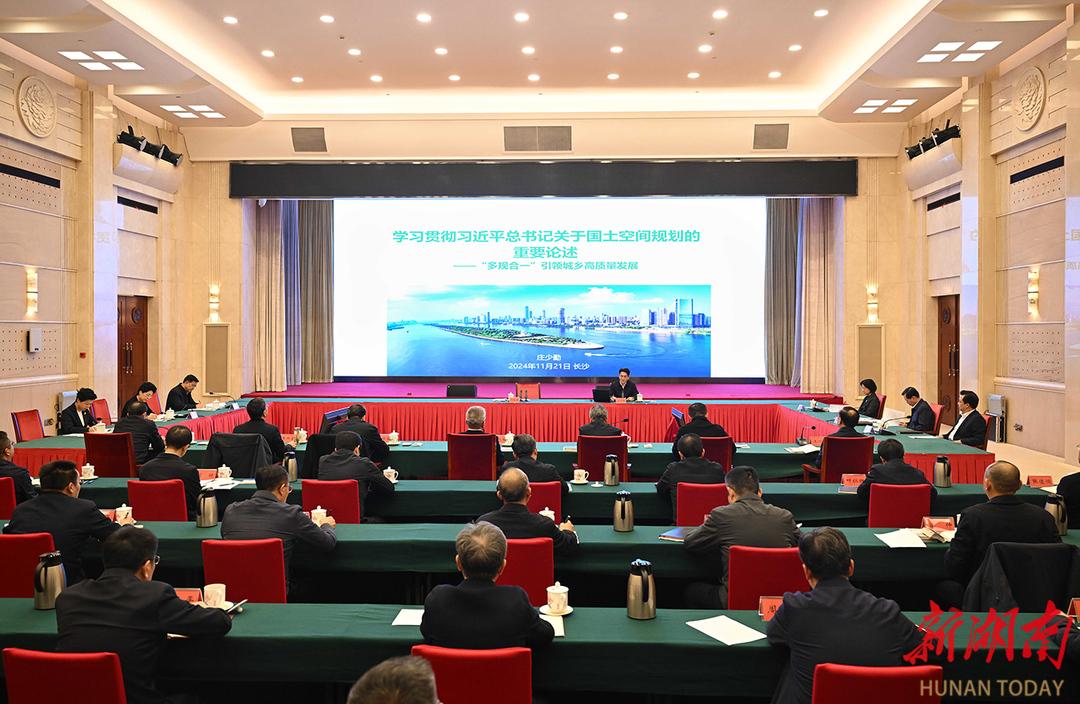 华声在线11月21日讯(全媒体记者 刘燕娟)21日,十二届省委理论学习中心组围绕“深入学习贯彻习近平总书记关于国土空间规划的重要论述精神”开展第四十三次集体学习。省委书记沈晓明主持并讲话,强调要切实增强做好新时代国土空间规划工作的责任感使命感,遵循国土空间规划规律,不断提升空间治理的能力和水平,为推动高质量发展、谱写中国式现代化湖南篇章提供有力支撑。省政协主席毛万春、省委副书记李殿勋出席。