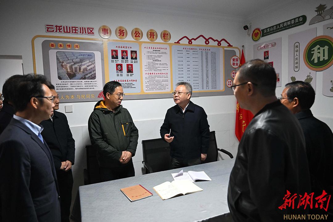 走进湘潭县易俗河镇云龙山庄小区,沈晓明深入了解小区治理、便民服务和矛盾纠纷化解等机制创新成效,指出要坚持和发展新时代“枫桥经验”,加强组织引导,更好发挥群众主体作用,不断提升基层治理能力,切实将矛盾纠纷及时化解在基层、化解在萌芽状态。