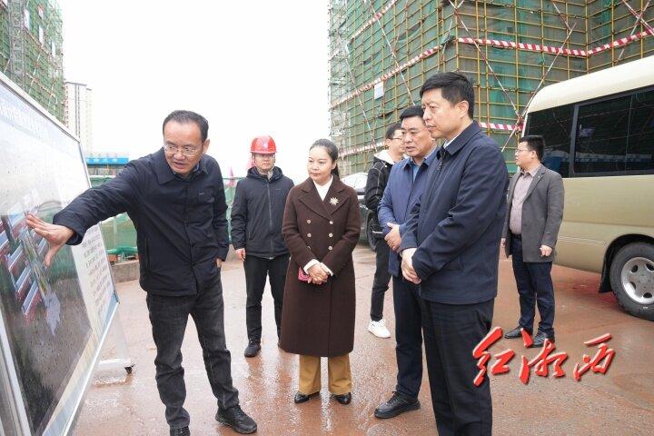 在泸溪职业教育中心项目现场,刘涛详细了解项目规划和建设进展情况,强调要进一步优化设计和施工方案,兼顾功能实用性和安全性,保证项目质量和安全,切实把民生工程建成优质工程、“德政工程”。