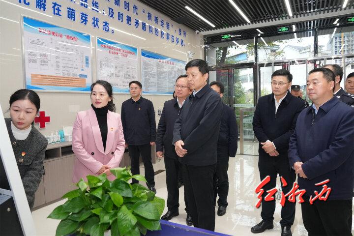 湘西网11月27日讯(全媒体记者 彭蕾)11月26日,湘西州委书记刘涛到政法系统调研。他强调,要深入学习贯彻习近平法治思想和习近平总书记关于政法工作的重要论述,忠诚履职、恪尽职守,敢于斗争、善于斗争,在维护国家安全和社会大局稳定、保障和促进社会公平正义上彰显新担当新作为。州级领导向邦伟、彭延敏、周燕飞、彭建民、李丽参加调研。