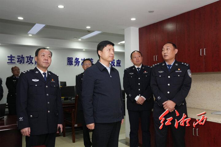 在州公安局,刘涛实地查看“情指行一体化”演示并听取有关情况介绍。他要求,要进一步提升辖区视频监控资源建设、整合、共享、应用水平,推动互联网、大数据、人工智能与公安工作深度融合,完善“情指勤舆”一体化实战化警务运行机制,全方位提高为人民服务的能力和水平。