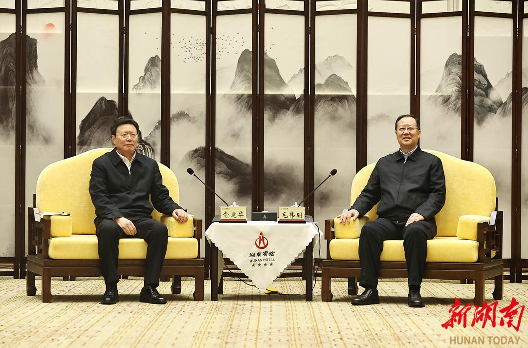 毛伟明感谢海关总署长期以来给予湖南工作的大力支持,并简要介绍湖南对外开放情况。他说,近年来,湖南深入贯彻习近平总书记关于湖南工作的重要讲话和指示批示精神,充分发挥区位、资源、产业等优势,持续用好中非经贸博览会、湖南自贸试验区等开放平台,深度融入共建“一带一路”,开放发展步履坚实。今年1-10月,湖南进出口总值4614.2亿元,工程机械、“新三样”、农产品继续快速增长,对非进出口稳居中西部第一;长沙中欧班列开行量保持全国第一方阵,怀化国际陆港中老班列开行量中部第一,张家界机场出入境人员创历史新高。希望海关总署继续支持湖南开放发展,在自贸试验区制度创新、保税物流中心建设、提升通关便利化水平、支持重点原材料进口等方面给予更多指导支持,助力湖南高水平对外开放,更好服务和融入新发展格局。