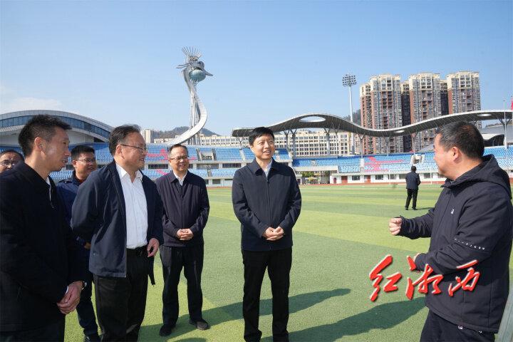 刘涛调研第十三届全国少数民族传统体育运动会场馆建设情况。团结报全媒体记者 刘炜 摄