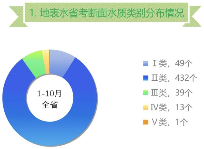 看地表水质量,前10个月,全省534个省级考核断面中,Ⅰ至Ⅲ类优良水质占比约97.4%;与去年同期相比,V类水质断面占比减少。