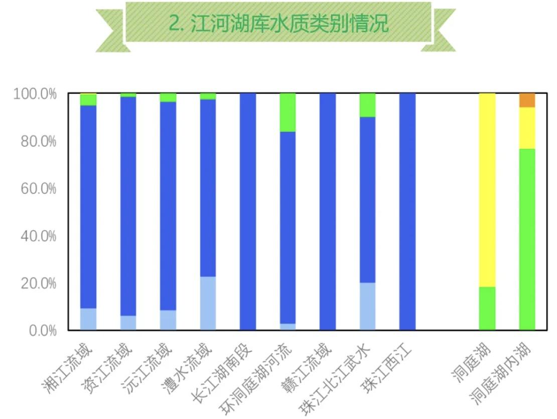 纳入考核的江河湖库中,湘、资、沅、澧水质全面保持优良,长江湖南段始终达到或优于Ⅱ类标准。洞庭湖断面以Ⅳ类水质为主,洞庭湖内湖大部分断面为Ⅲ类水质,有1个Ⅴ类水质断面,洞庭湖湖体呈现中营养状态,营养指数从前9个月的47.54下降到47.42。