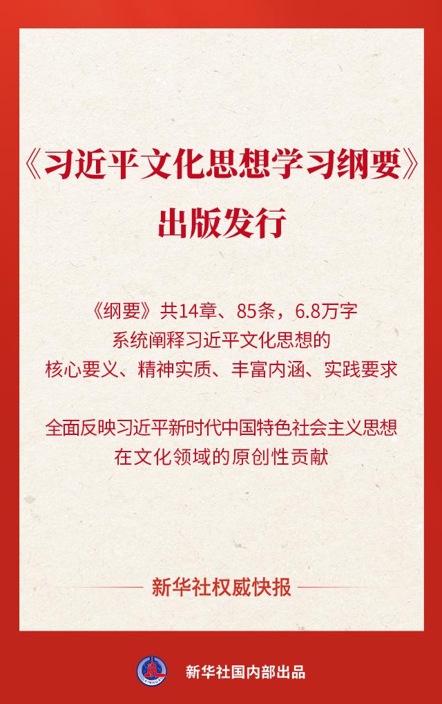 新华社北京12月3日电 为深入学习习近平新时代中国特色社会主义思想,贯彻落实习近平文化思想,中央宣传部组织编写《习近平文化思想学习纲要》(以下简称《纲要》)一书,已由学习出版社、人民出版社联合出版,即日起在全国发行。