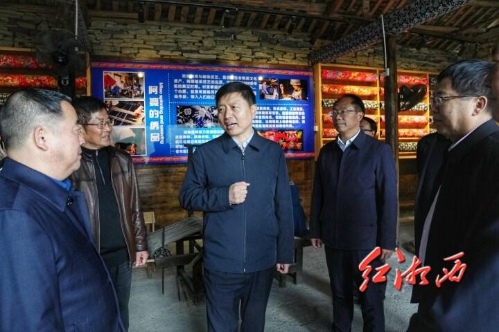 在麻冲乡竹山苗寨景区,刘涛走进苗绣堂、织布坊、豆腐坊等地,察看非遗保护传承情况,参观竹山花开演艺剧场、苗岭无边界泳池、竹山乡居、神龙谷等景点,了解乡村旅游发展情况。他说,要把传统工艺融入现代设计,把民族元素融入现代元素,推动优秀传统文化创造性转化、创新性发展。