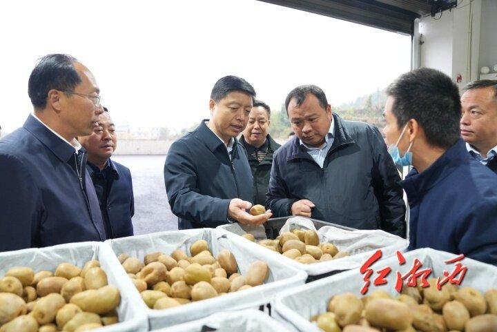 刘涛来到帮东绣矿山项目建设工地,察看项目施工进度,听取矿山企业汇报,要求守好安全生产底线和生态环境红线,在确保安全的前提下,加快项目建设进度,争取早日达产。随后,刘涛到优镒农业开发有限公司参观猕猴桃果汁饮料生产线、包装车间,希望企业抓好农产品精深加工、品牌建设、市场销售等工作,带动更多群众增收致富。