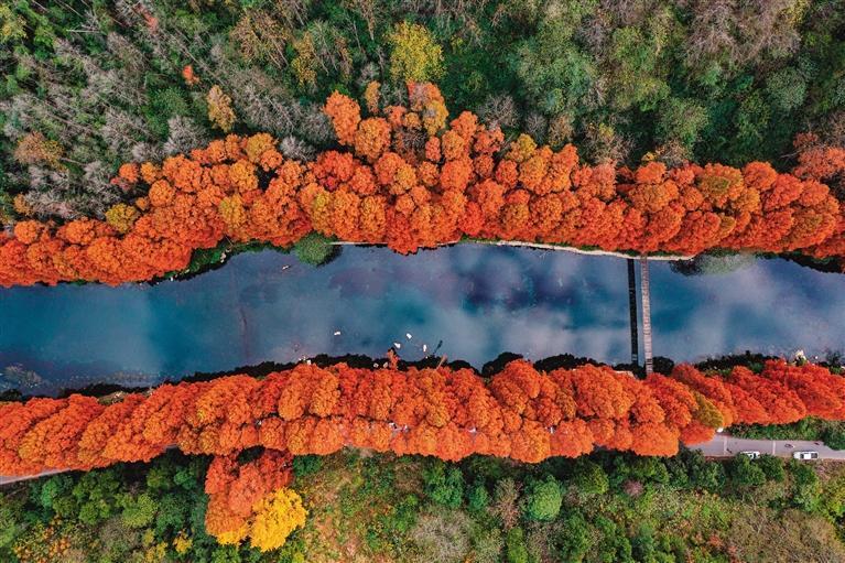 长潭岗的秋色吸引无数游客前来游玩打卡。 团结报见习记者 胡承鼎 摄