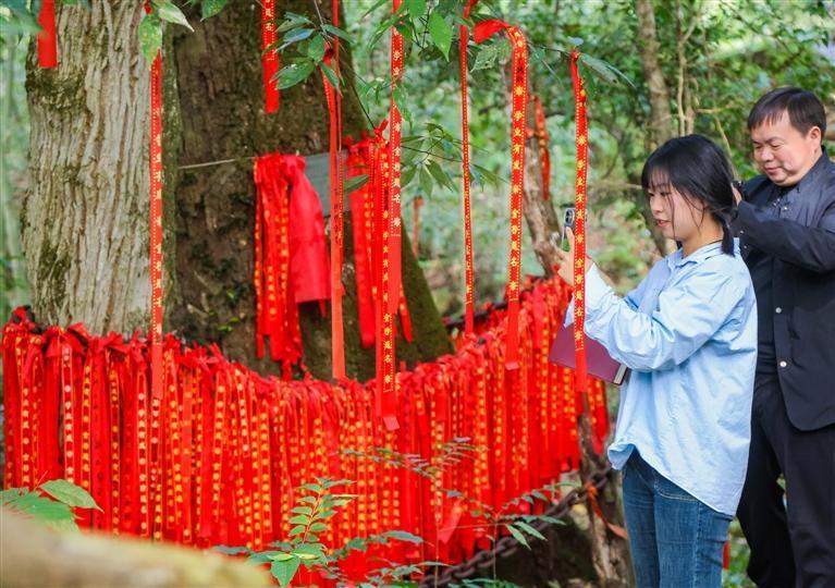喇宗坡“状元树”上挂满红绸,承载着美好的祝愿,也成为一道亮丽的风景。 团结报见习记者 胡承鼎 摄
