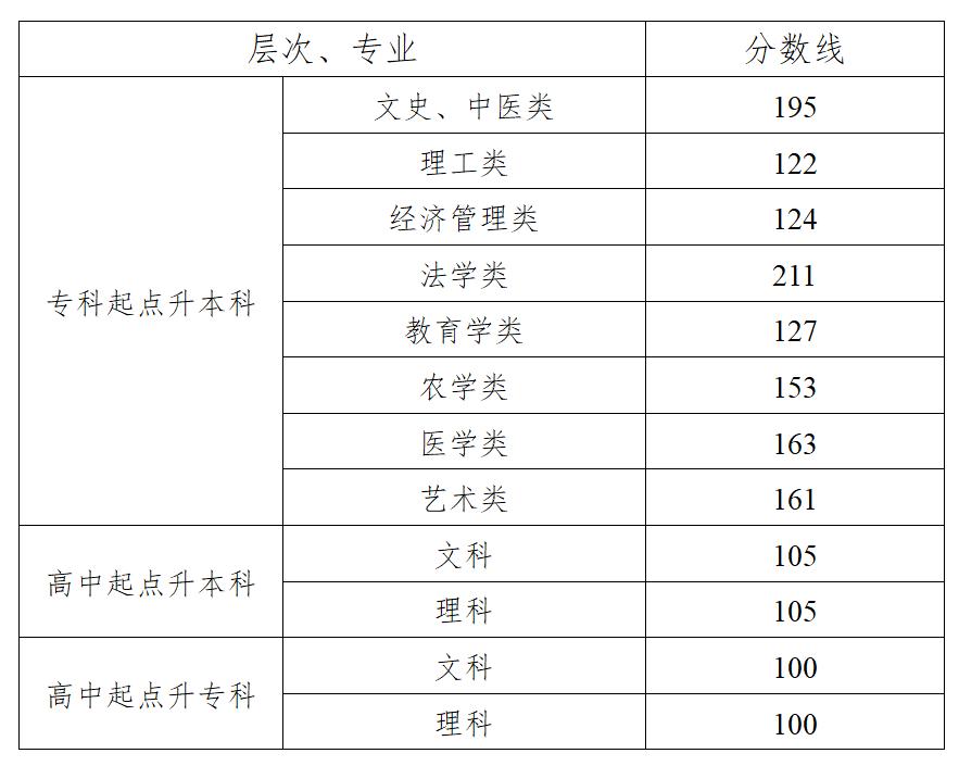 值得注意的是,由于“高起本”艺术(文、理)、“高起专”艺术(文、理)计划数大于生源数,其最低控制分数线按照《湖南省2024年成人高等学校考试招生实施办法》中“‘高中起点升本科’、‘高中起点升专科’艺术类专业(除史论、编导专业外)最低控制线不得低于相应招生类型和考试科类最低控制分数线扣除数学成绩后的70%。”的规定执行。