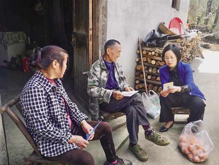 2024年4月,湘西州医疗保障局党组书记、局长程三艳(右一)到凤凰县水打田乡吊岩村农户家中宣传医保政策。