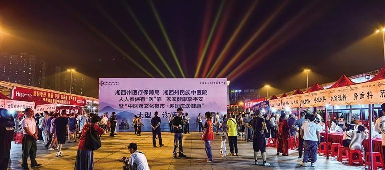2024年9月29日,湘西州医疗保障局与州民族中医院、国家税务总局湘西州税务局、“医惠保”承办公司共同携手开展“人人参保有‘医’靠 家家健康享平安”暨“中医药文化夜市·迎国庆送健康”大型义诊活动。 本组图片由 湘西州医疗保障局 提供