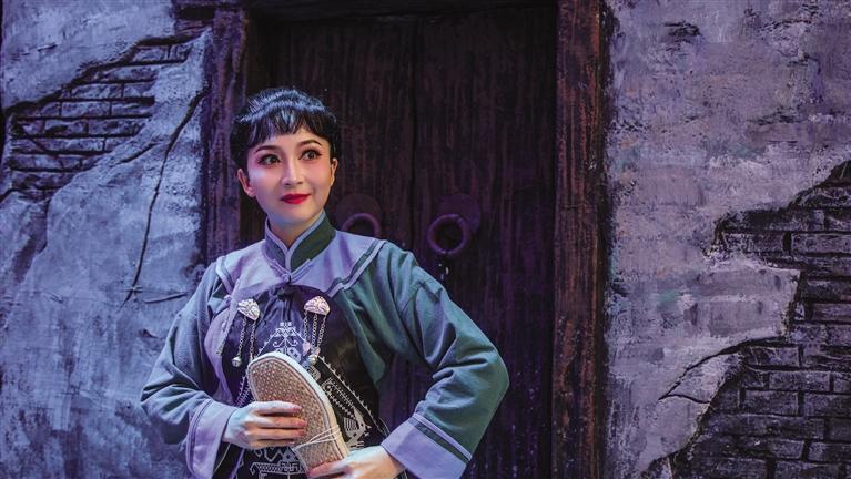 辰溪高腔州级传承人杨雅玲在《贺龙井畔朵朵莲》中饰演红军家属戴红莲。