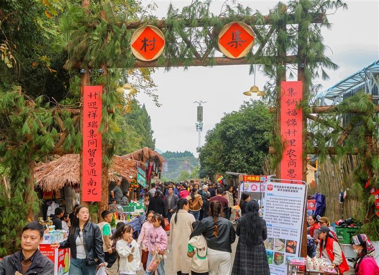 “村集”上农特产品丰富多样,吸引众多游客品尝、购买。 团结报见习记者 胡承鼎 摄