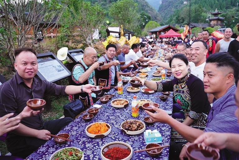 长龙宴上举杯共庆“中国农民丰收节”。 团结报全媒体记者 杨贤清 摄