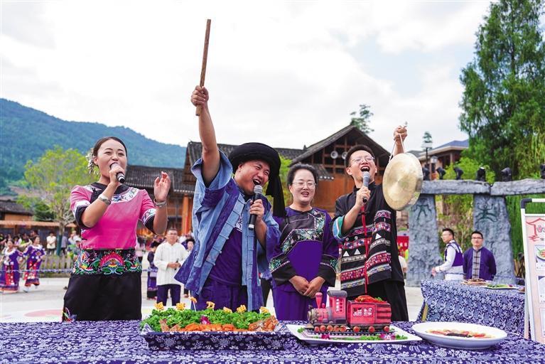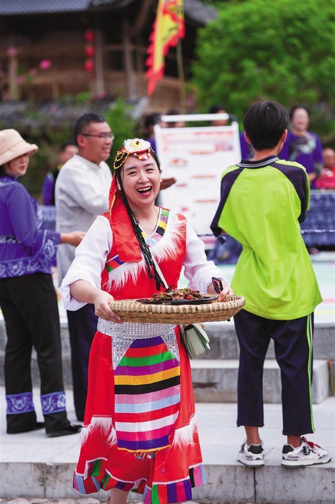 美食竞拍环节很是热闹。古丈县坪坝酸辣妹队的菜品食材独特,创意新颖,拍卖出2680元。 团结报全媒体记者 杨贤清 摄