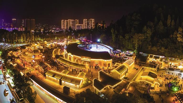 村厨小村是一个浓缩版的“中国之窗”,成为酉水河畔流光溢彩的新风景(无人机照片)。 团结报全媒体记者 陈昊 摄