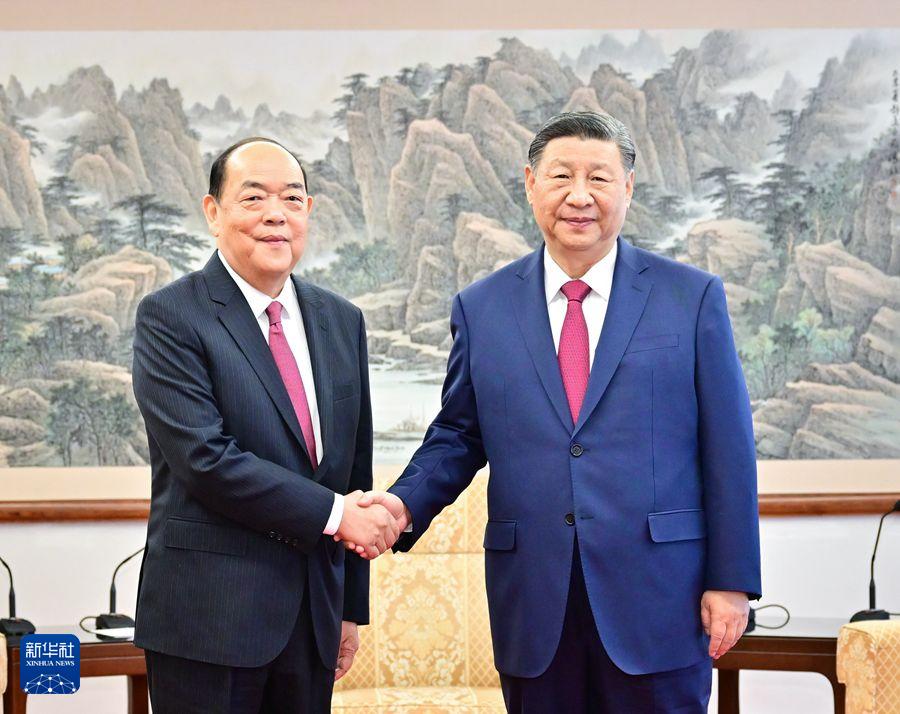 12月18日下午,国家主席习近平在澳门会见澳门特别行政区行政长官贺一诚。新华社记者 翟健岚 摄