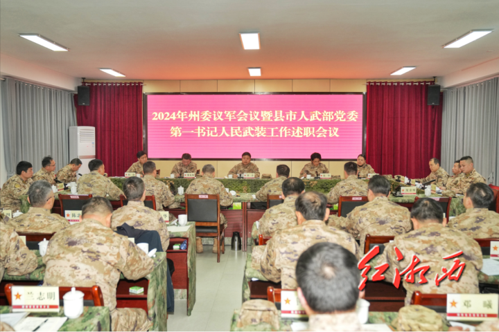 湘西网12月19日讯(全媒体记者 付丹)12月18日,2024年湘西州委议军会议暨县市人武部党委第一书记人民武装工作述职会议在吉首召开。会议深入学习贯彻党的二十届三中全会精神和习近平强军思想,总结全州党管武装工作和国防动员建设情况,组织县市人武部党委第一书记述职,研究部署下阶段工作。州委书记、吉首军分区党委第一书记刘涛主持会议。州委副书记、州长陈华,州委副书记廖良辉,州人大常委会主任吴凌频,州政协主席李平出席。