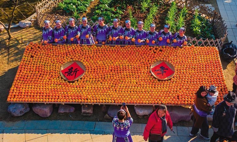 “橘晒”活动现场人山人海,游客和市民都前来分享丰收的喜悦(无人机照片)。 团结报见习记者 胡承鼎 摄