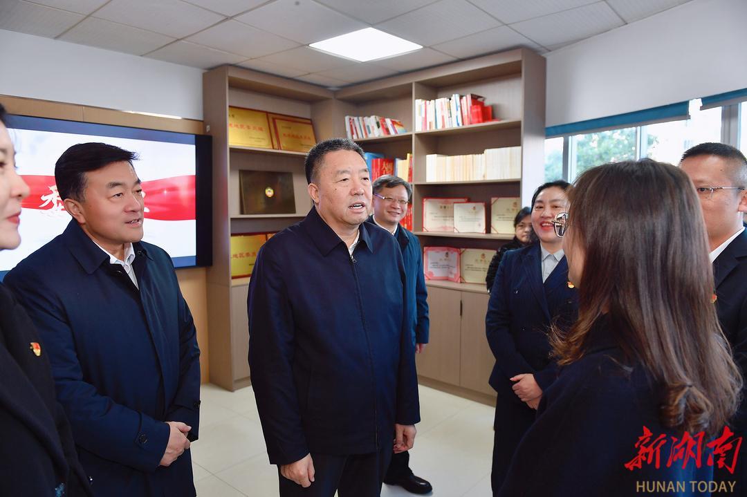图为毛万春在长沙市芙蓉区荷花园街道劳模委员工作室调研。