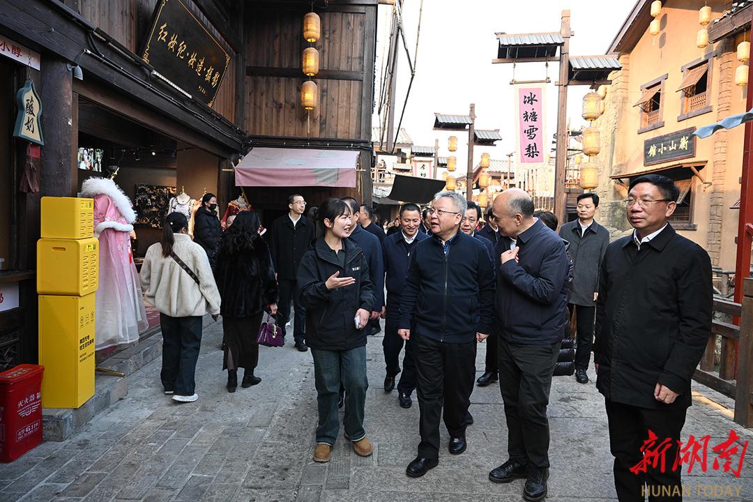 走进南岳里庙会民俗美食文化街区,沈晓明沿街了解文旅综合体业态建设、庙会展演、美食文化等情况,鼓励充分展示南岳历史文化和民俗风情,不断丰富旅游产品供给,打造消费新场景,提升旅游发展能级。