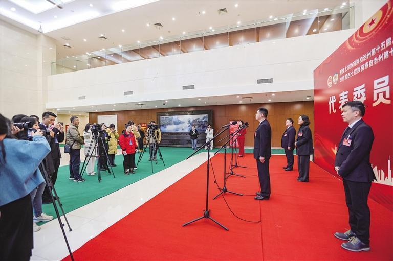 首场“委员通道”集中采访在武陵山大剧院南侧举行,李博、褚忠辉、张满燕、向明4位州政协委员,从法治建设、文旅发展、青少年民族文化教育和农业产业发展保障等方面,结合各自履职实际,回应热点关切,回答记者提问。
