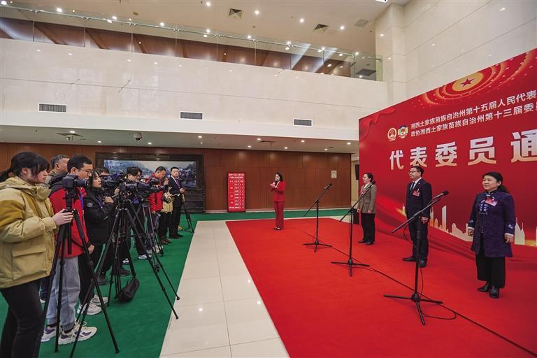 1月10日下午,武陵山大剧院南侧,湘西州两会第二场“委员通道”采访活动举行。