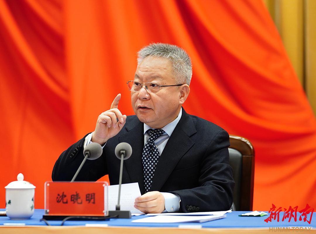 沈晓明强调,要坚持用改革精神和严的标准管党治党,推动清廉湖南建设取得更大成效。要扎实推动政治监督具体化精准化常态化,紧盯强化党的创新理论武装、严明政治纪律和政治规矩、贯彻落实党中央重大决策部署抓政治监督,推动全省各级党组织和广大党员干部筑牢政治忠诚、提高政治能力,在思想上政治上行动上同以习近平同志为核心的党中央保持高度一致,推动党中央决策部署不折不扣在湖南落地生根。要坚持党性党风党纪一起抓,持之以恒加强党性党纪教育,实事求是抓好监督执纪问责,驰而不息纠“四风”树新风,激发干事创业内生动力。要坚定不移推进反腐败斗争,系统整治金融、国企、能源、医药、教育、园区、乡村振兴、工程建设和公共资源交易等重点领域腐败问题,从严惩处家族式腐败,坚决惩治群众身边的“蝇贪蚁腐”。要从建章立制入手坚决铲除腐败滋生的土壤和条件,推动完善各类监督贯通协调机制,健全风腐同查同治机制,完善权力配置运行的制约和监督机制,通过改革消灭“打牌子”“提篮子”的生存空间,不断提升防治腐败的能力和水平。要持续营造风清气正的政治生态,严肃党内政治生活,深化以案促改促建促治,加强新时代廉洁文化建设,推动以清为美、以廉为荣在湖南蔚然成风。