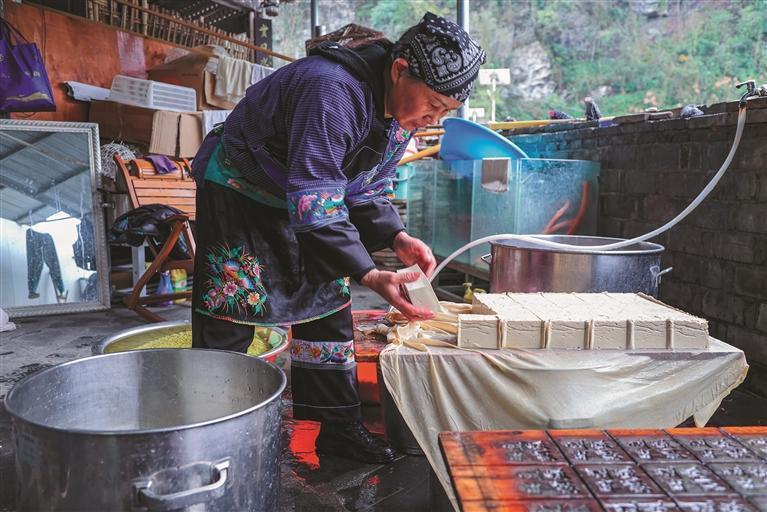 “如今,我们公司已经把‘坪朗豆腐宴’注册成了商标,将来坪朗村会把坪朗豆腐宴作为一款文旅产品推出,吸引更多的游客前来。”石清香既是坪朗豆腐有限责任公司负责人,又是坪朗村党支部书记,同时还是坪朗豆腐非遗传承人。近年来,在石清香的带领下,坪朗豆腐作为非遗项目,不仅得到传承和发扬,更是成立了自己的商业体系,为当地村民增收作出了卓越贡献。