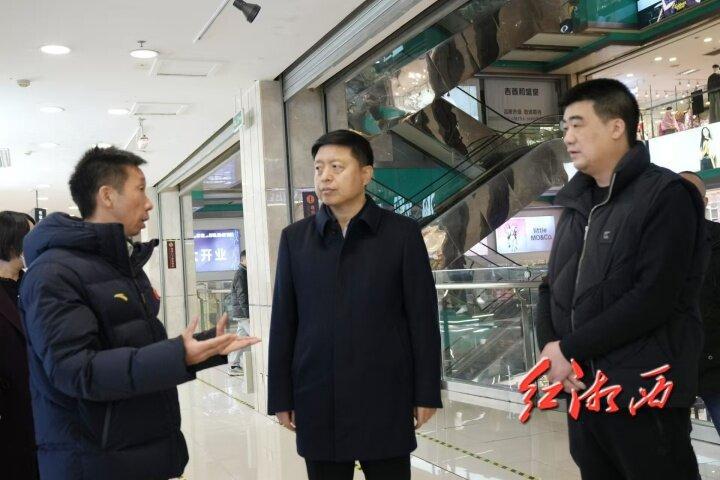 刘涛还来到步步高、和盛堂商业广场,调研安全生产及市场保供等工作。他强调,春节期间安全生产、市场保供等事关人民群众切身利益,事关社会大局和谐稳定。要认真学习贯彻省“两会”精神,加强对春节期间安全生产工作的组织领导,树牢红线意识和底线思维,时刻紧绷安全生产这根弦,全力查隐患、抓整改、防事故,保障人民群众生命财产安全。要做好市场稳价保供工作,严格落实食品安全责任制,加强货源组织,畅通保供渠道,严格价格监管,更好满足多层次消费需求,切实让广大人民群众度过一个安乐、祥和的春节。