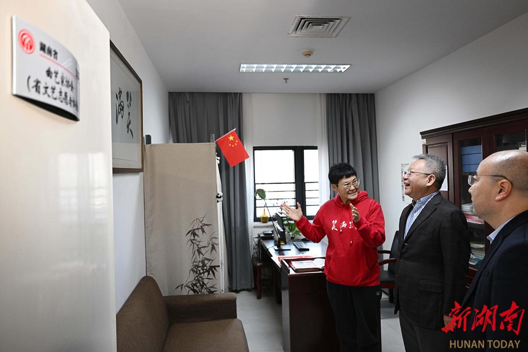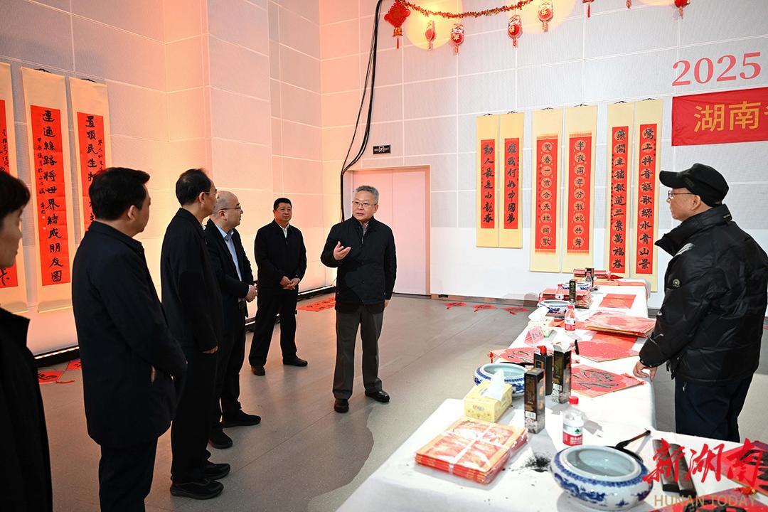 在省画院、省文联麓山剧场,沈晓明参观书画名家作品展和文艺成果展示,深入了解省画院管理运行、服务艺术家创作、文艺人才培养和文艺惠民活动等情况。他指出,文艺工作者要深入基层、面向群众,把优秀文艺作品送到群众中去。要不断拓展文艺形式,丰富文艺演出,让文艺工作者有更多“用武之地”。沈晓明还来到省文联机关,与文艺工作者和干部职工亲切交流,提前向大家致以新春祝福。