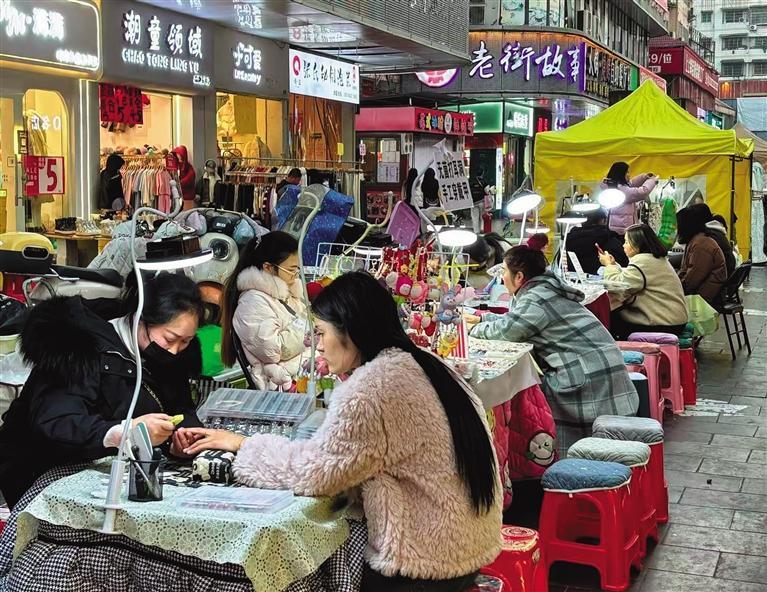 临近春节,吉首香港街的美甲摊顾客接踵而至,摊主开启年前“爆单模式”。 团结报全媒体记者 肖颖 摄