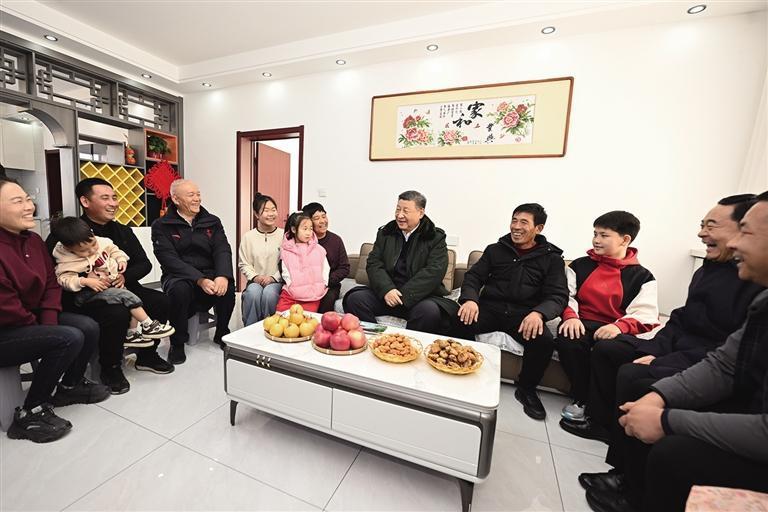 正值农历小年,家家户户贴上了春联窗花。习近平先后走进村民朱西存、王宝维家,察看房屋结构质量和年货准备情况,了解政府的重建房屋补助是否到位、村民收入来源主要有哪些。在同王宝维一家围坐一起时,王宝维告诉总书记,新房敞亮暖和,年货都办齐了,全村人发自内心感恩党、感恩总书记。习近平问他还有什么要求和希望,他说自己的希望是把生活过得更好。习近平高兴地回应他,你们的希望也就是我们的希望,党和政府永远是人民群众的强大依靠。