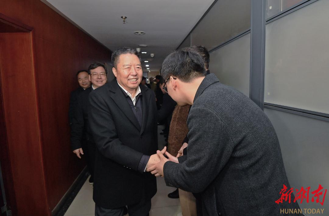 2月5日下午,省政协主席毛万春率队在各民主党派省委会和省工商联走访慰问。图为毛万春在各民主党派省委会走访慰问。