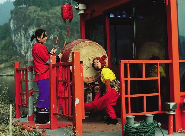 2月1日,保靖县酉水河畔的村厨小村鼓声阵阵,来自水田河镇的村民以传统民族习俗“苗鼓”庆贺新春。
