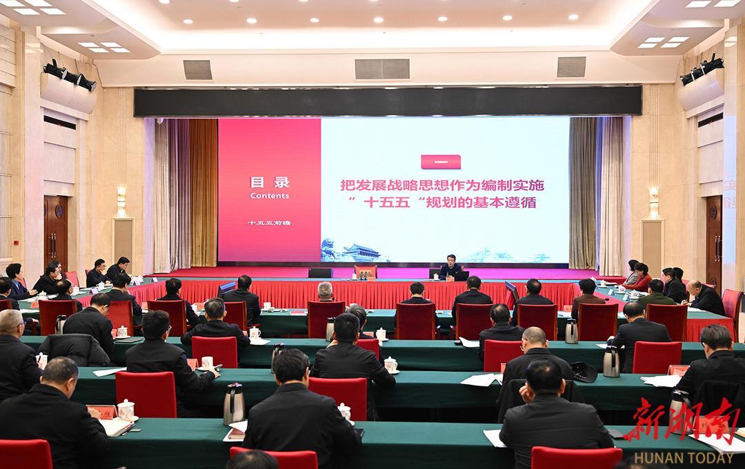 会议强调,要把握总体要求和工作重点,找准“十五五”规划编制的着力点,把党中央决策部署及习近平总书记关于湖南工作的重要讲话和指示批示精神坚持不懈落实好,持续推动“三高四新”美好蓝图转化为施工图、实景图。要突出以习近平新时代中国特色社会主义思想为指导,突出把高质量发展的根本导向立起来、落实好,突出进一步全面深化改革,突出人这个关键因素,突出更好统筹发展和安全,突出湖南的区位条件和优势特色,在全国发展大局中更好找准位置、彰显担当。