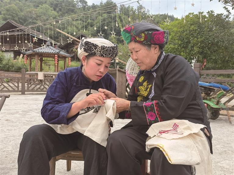 图为杨春英(右)传授数纱技艺