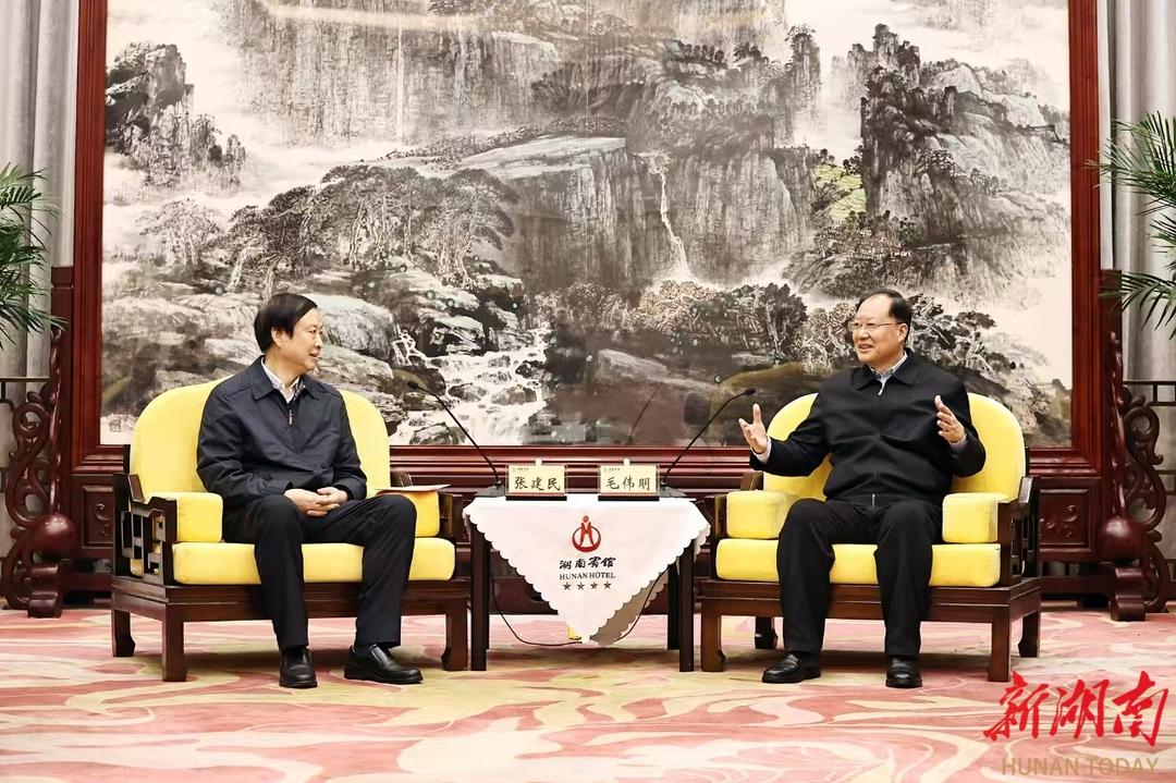 毛伟明对国家烟草专卖局长期以来给予湖南的大力支持表示感谢。他说,省委、省政府高度重视烟草高质量发展,全力稳定烟叶生产、净化卷烟市场,“十四五”以来,湖南卷烟相继实现工业总产值、省内工业产值、工业增加值、税利总额“四个过千亿”,烟叶和卷烟的产销规模稳居全国“第一方阵”;2024年,全省烟农、卷烟零售户的户均年收入分别达18.23万元、4.4万元,近4年年均分别增长14%、5.2%,为全省高质量发展、脱贫攻坚、乡村振兴特别是群众增收作出了重要贡献。希望国家烟草专卖局一如既往关心支持湖南,在推进烟叶基础设施建设、拓展烟草产业发展空间、推动卷烟企业绿色化数字化转型等方面加强指导,助力湖南高质量发展。