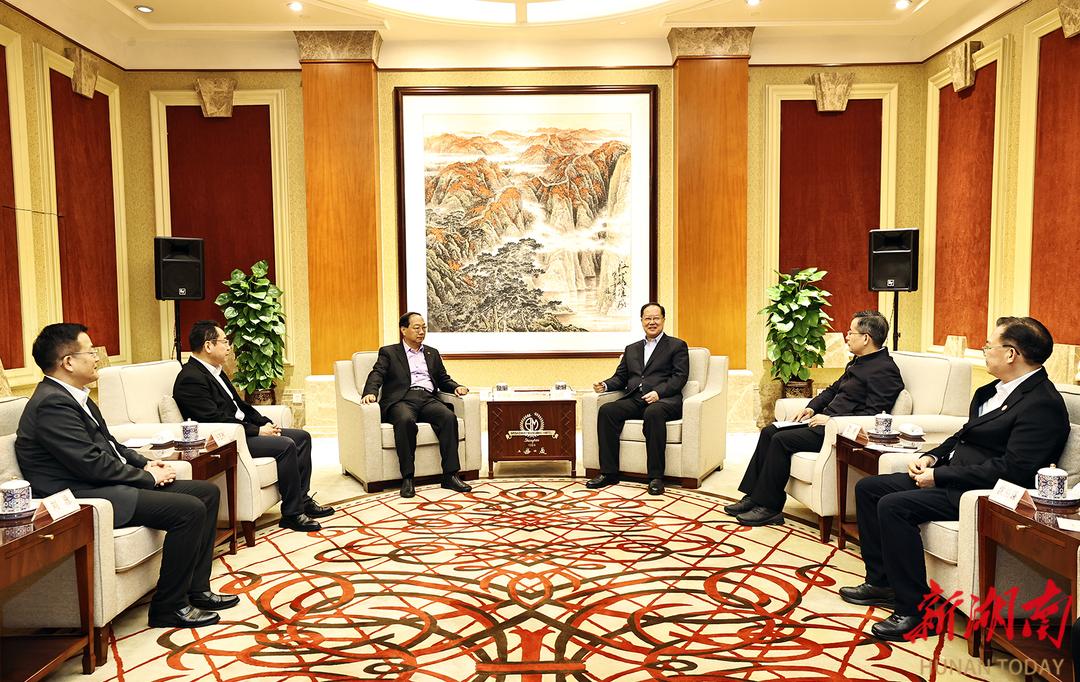 湖南省政府秘书长瞿海,上海市政府秘书长马春雷陪同。