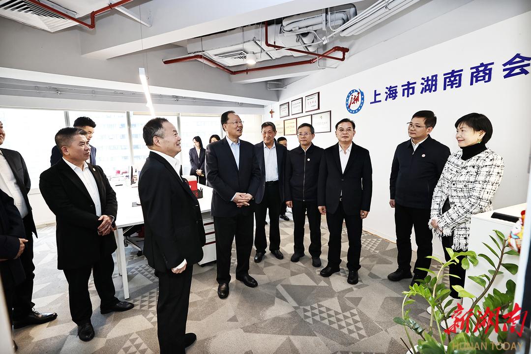 毛伟明一行还走访了上海市湖南商会并参观伟仁投资集团。商会服务湘商企业6000余家,涉及智能制造、精细材料、低空经济等行业。毛伟明向广大湘商长期支持家乡、建设家乡表示感谢,希望大家当好湖南的“形象使者”和“招商专干”,积极宣传湖南、投资家乡,与家乡双向奔赴、合作共赢。
